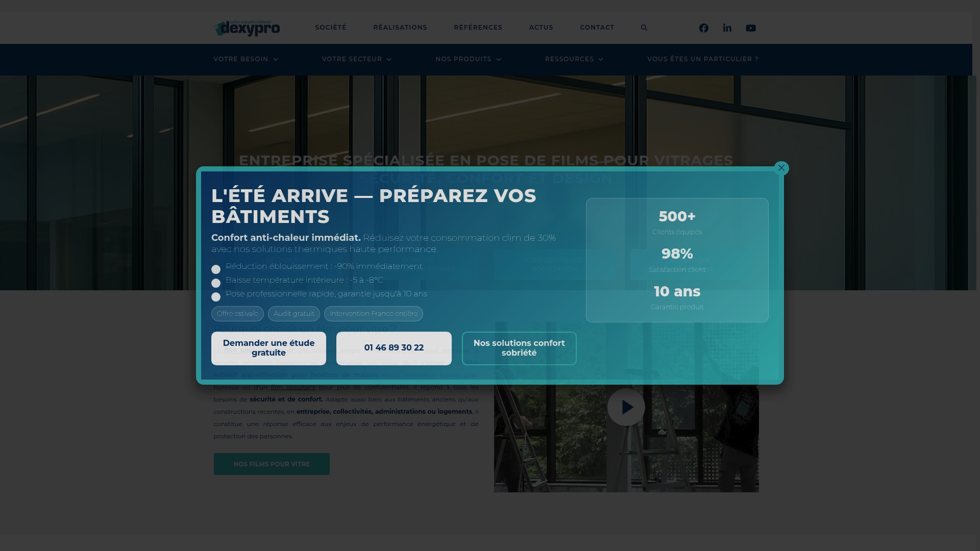 Dexypro propose une offre complète de pose de films pour vitrages destinée aux collectivités, entreprises et particuliers. Le positionnement technique et l'expérience terrain en font un partenaire pertinent pour des projets de sécurité, confort thermique et esthétisme.